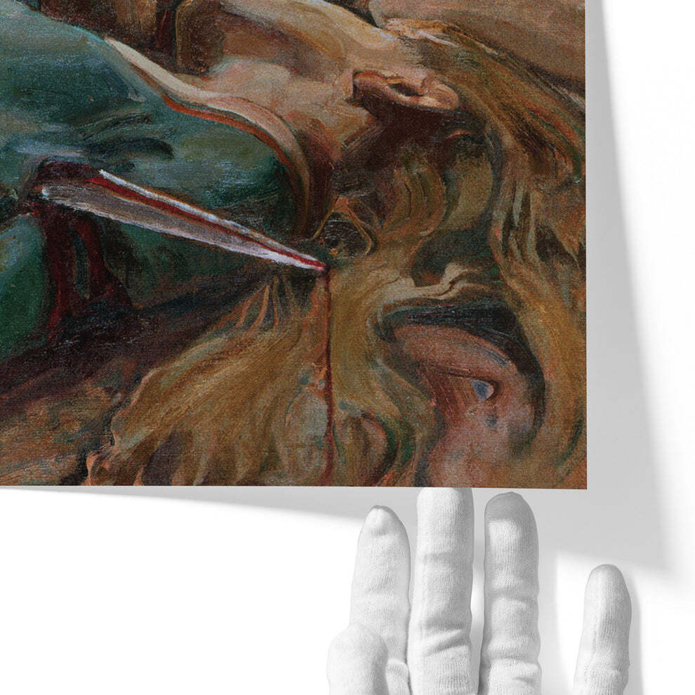 О картине: Одна из самых знаковых картин немецкого символизма. Франц фон Штук изображает падшего ангела Люцифера — величественного, сильного, опасно прекрасного. Его пронзительный взгляд и расправленные крылья передают вызов и бунт против небесной власти.