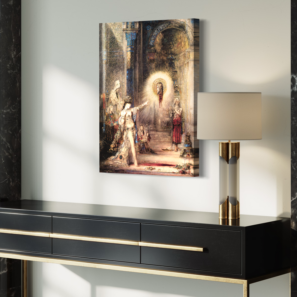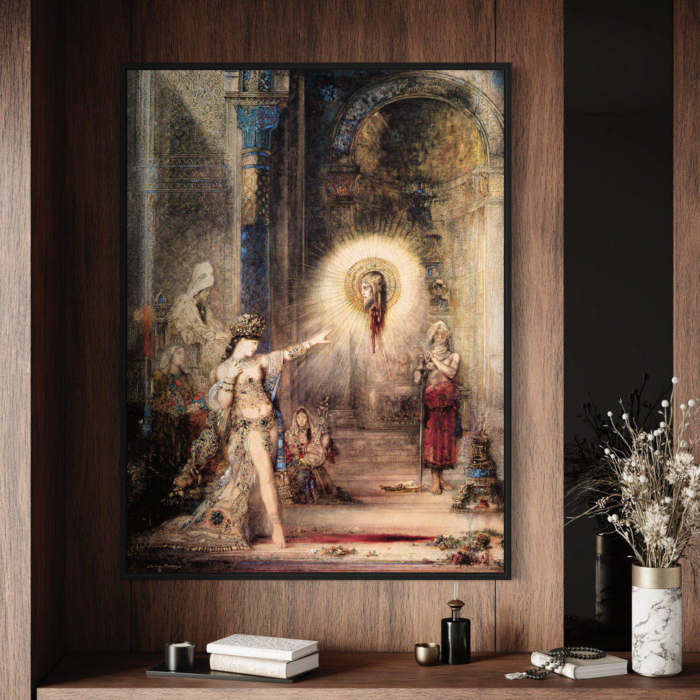 О картине: «Явление» (1876) — один из самых впечатляющих акварельных шедевров Гюстава Моро, проникнутый мистикой и драматизмом. На полотне изображена библейская Саломея, охваченная ужасом перед видением — парящей в воздухе отрубленной головы Иоанна Крестителя, сияющей призрачным ореолом. Акварель придаёт сцене особую призрачность и лёгкость, а изысканная техника Моро с её филигранной детализацией усиливает ощущение сверхъестественного и тревожного. Богато украшенный интерьер, полный блеска и роскоши, резко контрастирует с жутким видением, создавая напряжение, от которого невозможно отвести взгляд. Эта работа — не просто иллюстрация библейского сюжета, а глубоко символическая композиция, в которой сталкиваются красота и ужас, власть и уязвимость. «Явление» Моро — это произведение, которое одновременно пугает и завораживает, оставаясь вечным напоминанием о силе искусства воздействовать на воображение и чувства.
