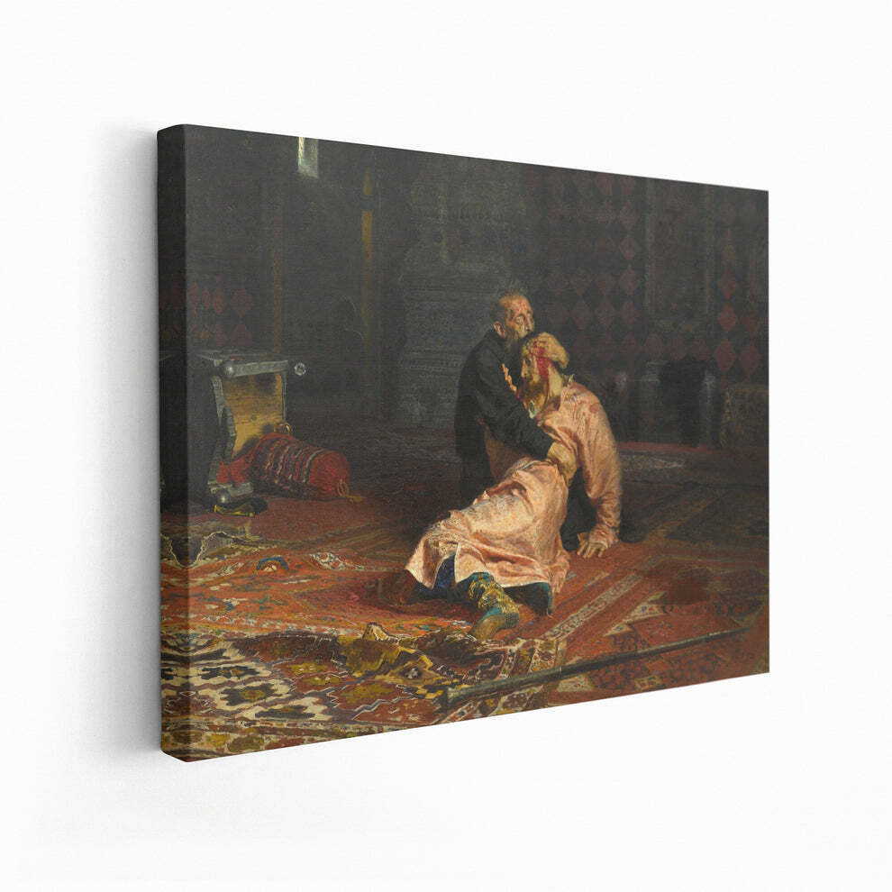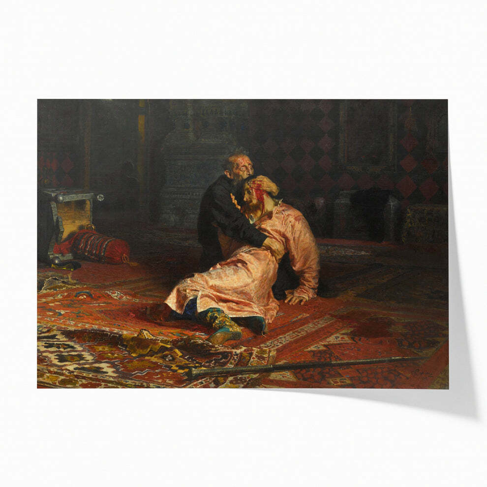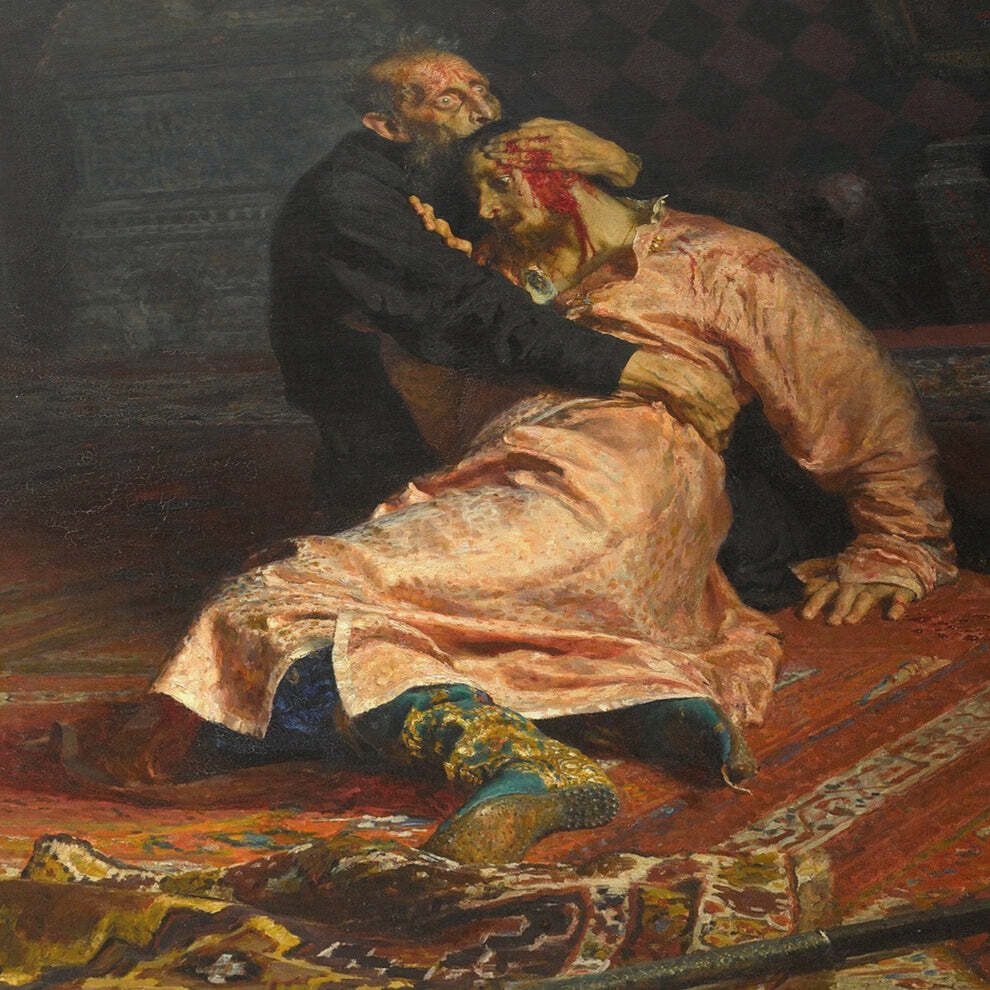 О работе: Одна из самых драматичных картин русской живописи, наполненная мощной эмоциональной энергией. Репин изображает трагический момент — царь Иван Грозный в припадке ярости смертельно ранит своего сына Ивана. В темной, гнетущей атмосфере мы видим отца, с искажённым от ужаса лицом, держащего на руках умирающего наследника.