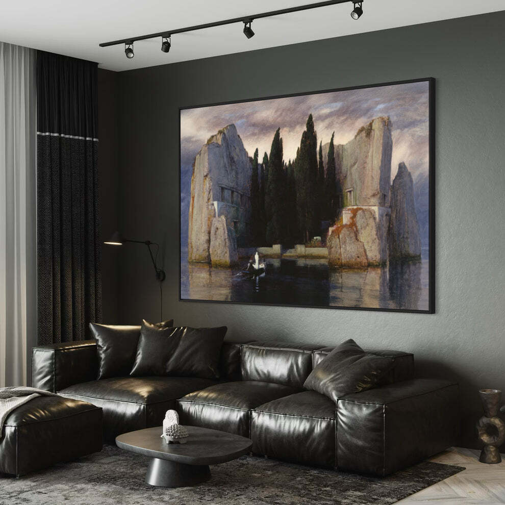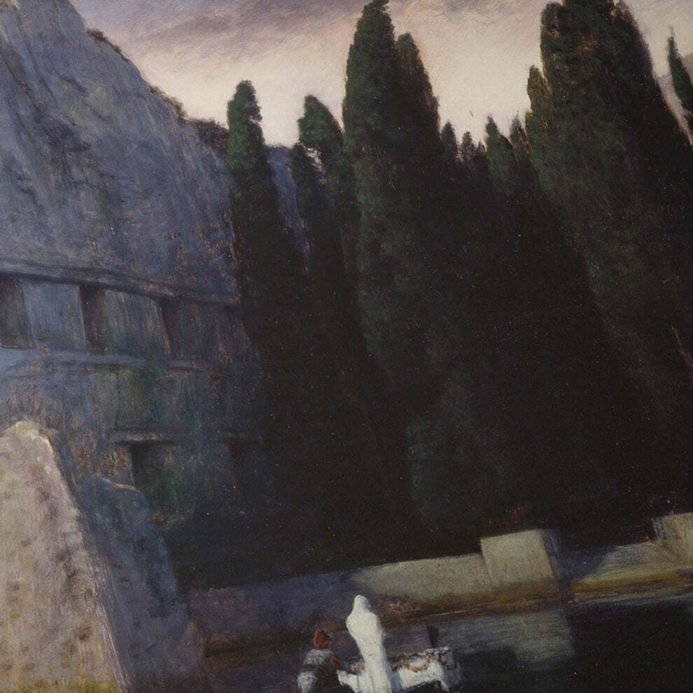 Бёклин мастерски использует игру света и тени, создавая настроение задумчивости и глубокой меланхолии. Это произведение словно приглашает зрителя прикоснуться к вечным темам — смерти, памяти и бесконечности.
