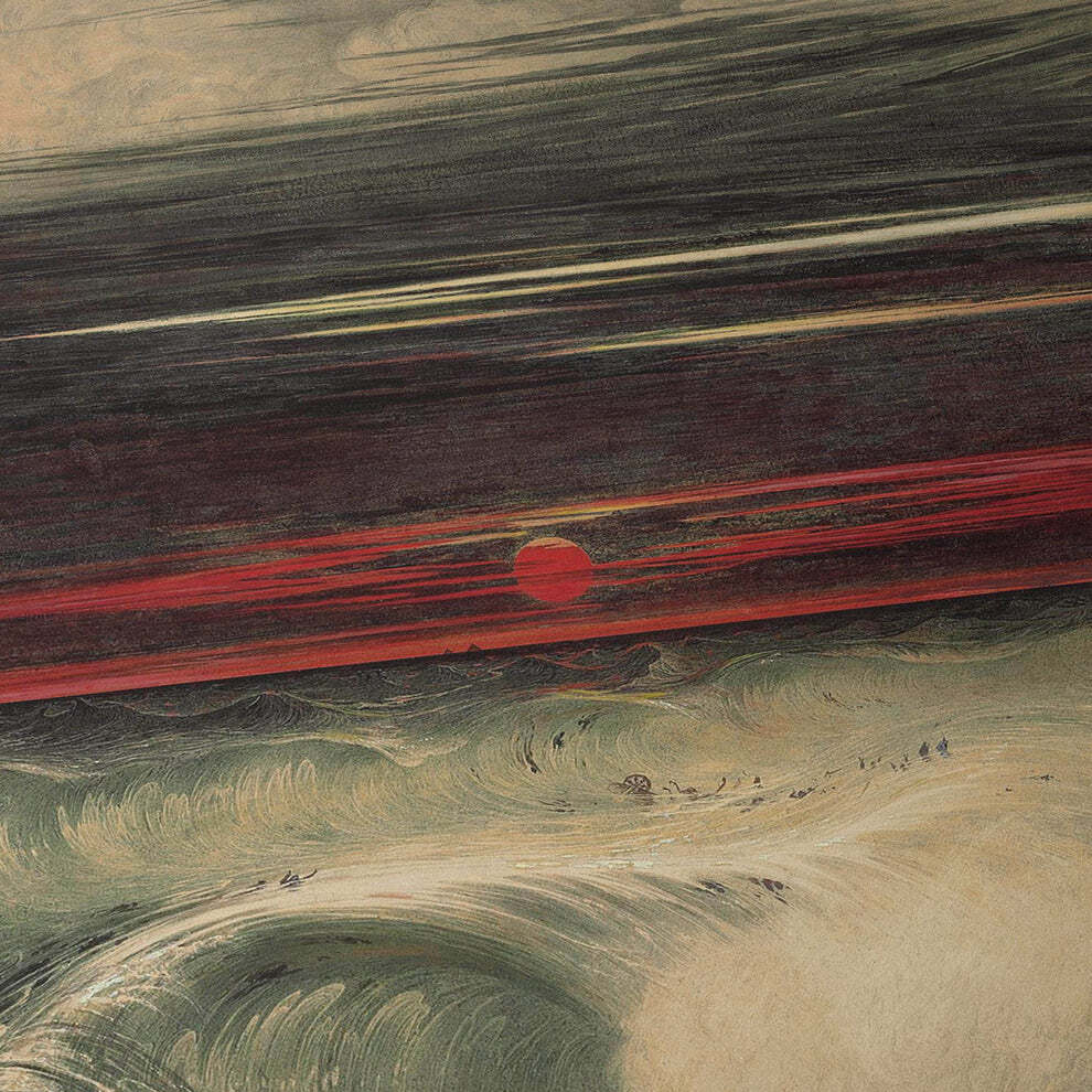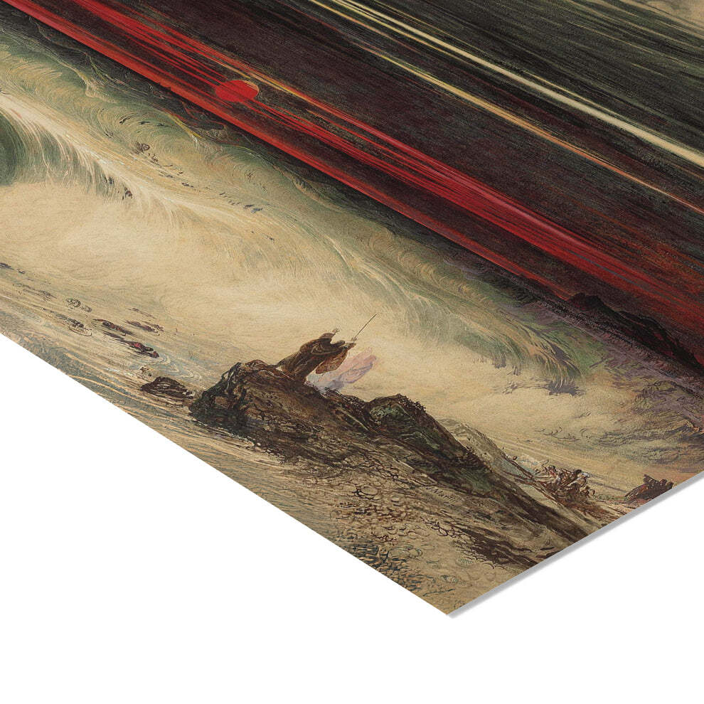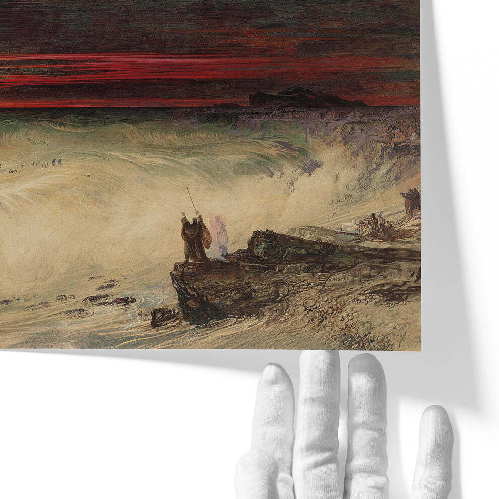 О работе: Эпическая картина Джона Мартина «Гибель войска Фараона» (1836) переносит зрителя в библейский момент разделения Красного моря и гибели египетской армии. Мартин мастерски передаёт грандиозность катастрофы: стремительные волны рушатся на войско, молнии рассекают мрачное небо, а хаос и отчаяние наполняют пространство.