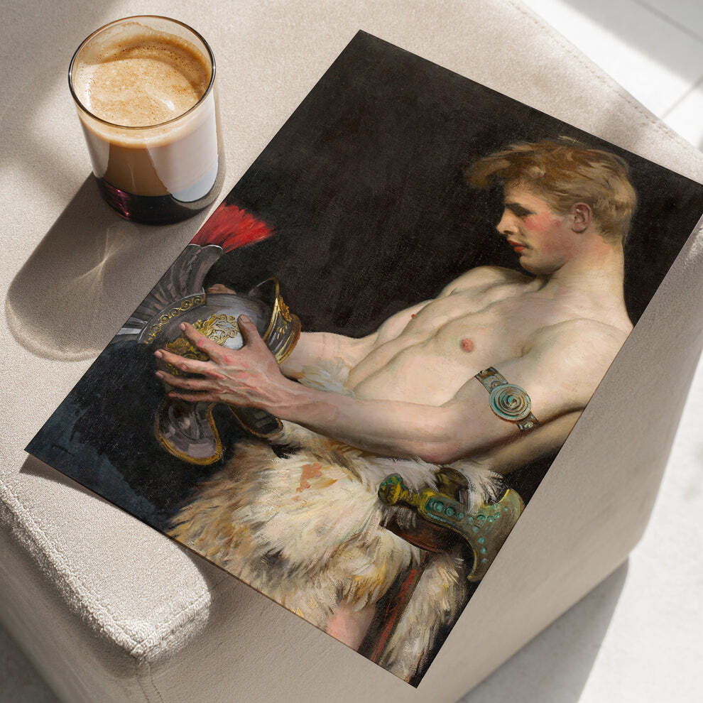 О работе: Картина Омара Шиндлера «Германский воин с шлемом» – это мощный и величественный образ воина древних германских племён. Художник с редкой точностью и вниманием к деталям передаёт не только внешность, но и дух героя, воплощающего силу и независимость своего народа.