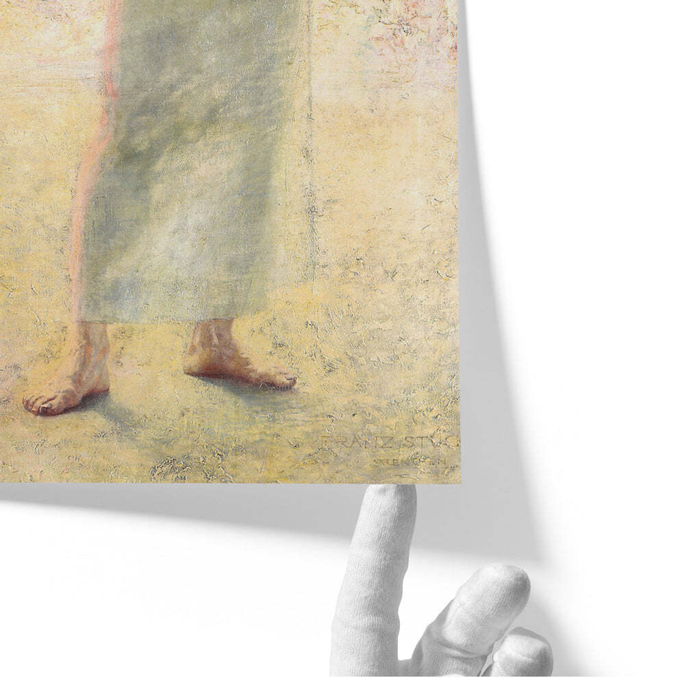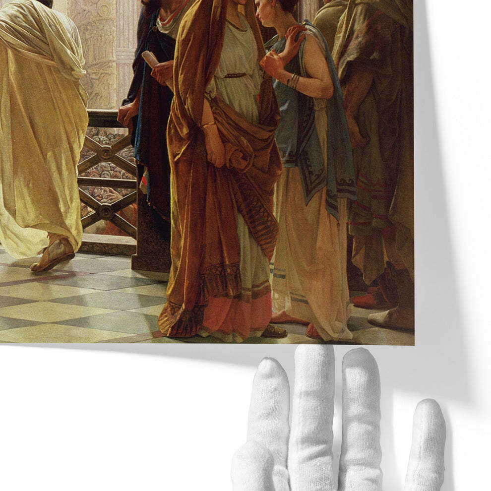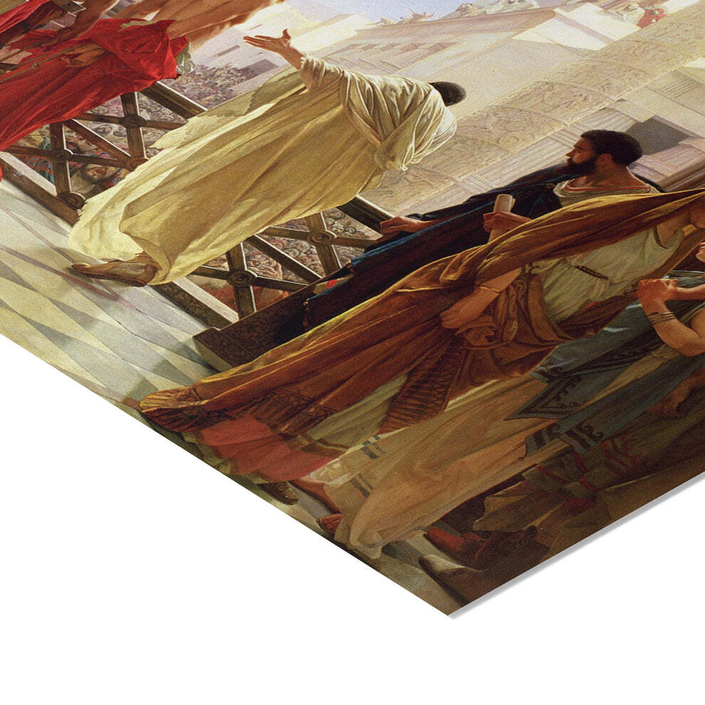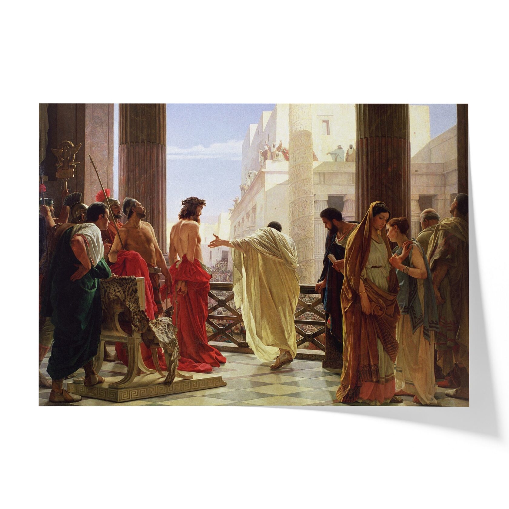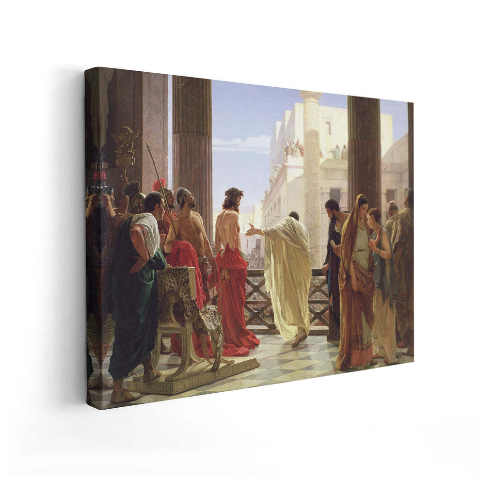О картине: Перед нами одна из самых сильных и эмоциональных интерпретаций Страстей Христовых. На картине — момент, когда Понтий Пилат выводит истерзанного Иисуса к толпе и произносит слова: «Ecce Homo» — «Се Человек». Чизери пишет с почти фотографической точностью, но выбирает необычную точку зрения: зритель видит сцену как бы с плеча Пилата, наблюдая за реакцией людей внизу — потрясённых или равнодушных. Этот приём усиливает драму и подчёркивает образ Христа — страдающего, но исполненного молчаливого достоинства. Каждая деталь — ткань, архитектура, выражения лиц — говорит о мастерстве художника, но истинная сила картины заключена в её психологическом напряжении. Центральный контраст здесь — власть и уязвимость: Пилат в римской торжественной позе указывает на избитого и связанного Иисуса. И в этот миг сцена превращается в размышление о справедливости, жертве и человеческой слепоте. Картина Чизери словно останавливает мгновение, вбирая в себя всю тяжесть страстей Христовых — момент, полный трагической силы и вечного смысла.