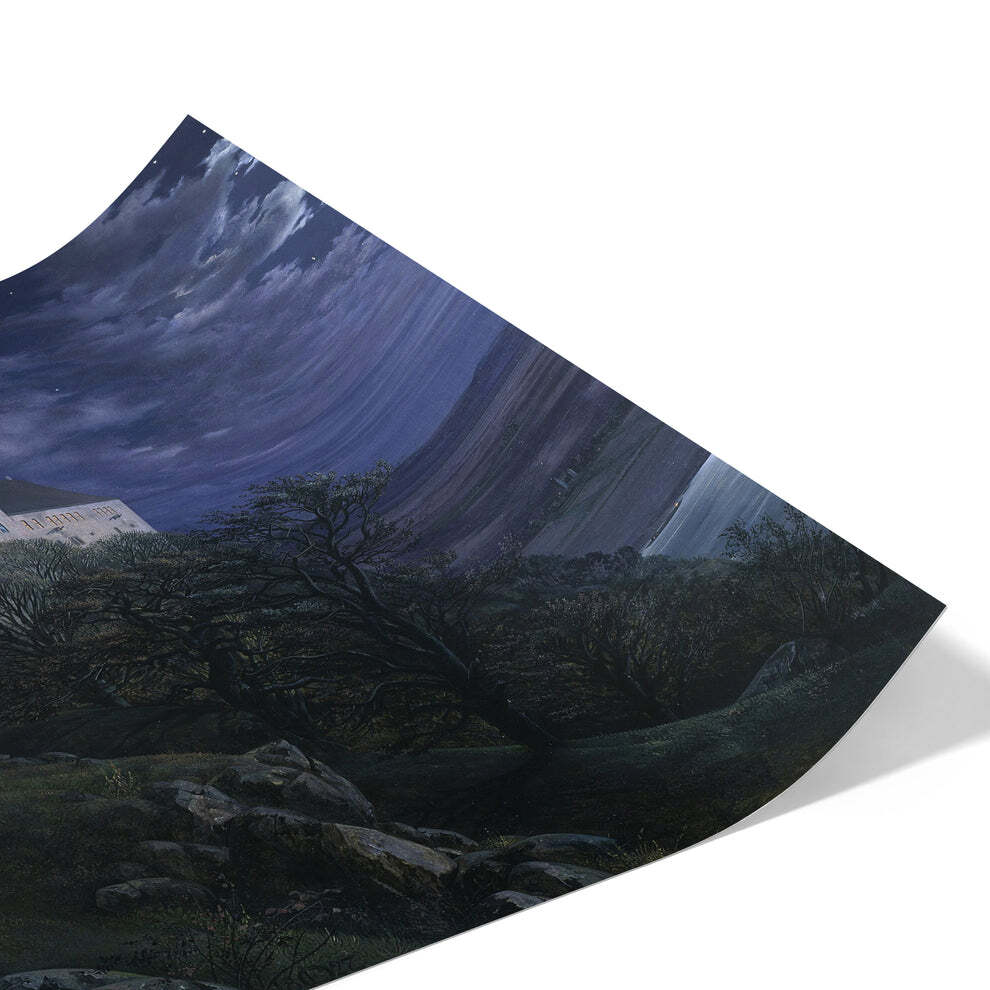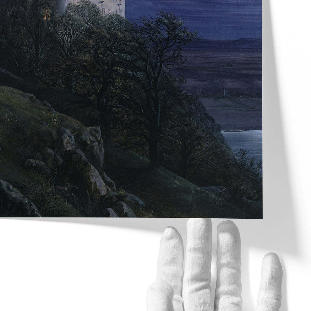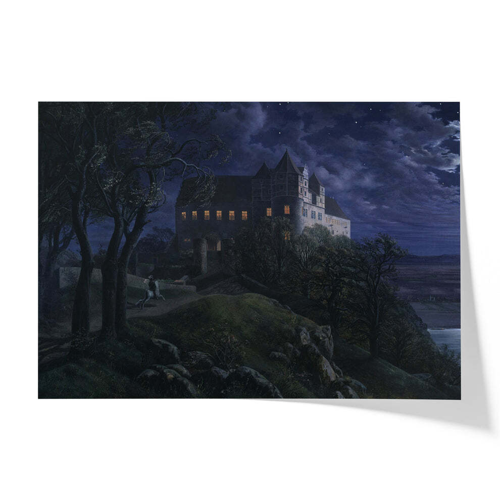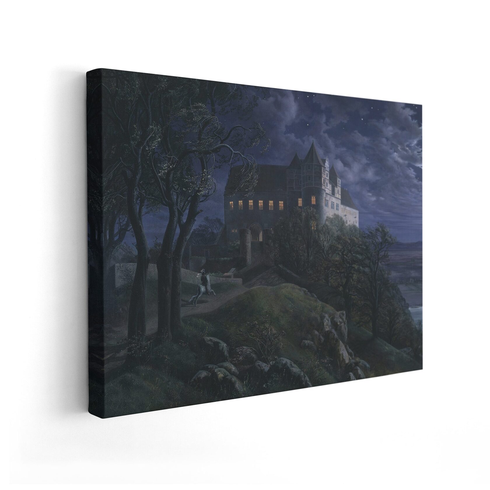 О картине: Перед нами романтическое видение, где точность архитектуры соединяется с тайной и тоской. Лунный свет освещает стены замка Шарфенберг, восстановленного саксонским дворянином Карлом Боромеем фон Милицом. В XIX веке здесь собирались художники и поэты-романтики, превращая это место в духовный центр своего круга.