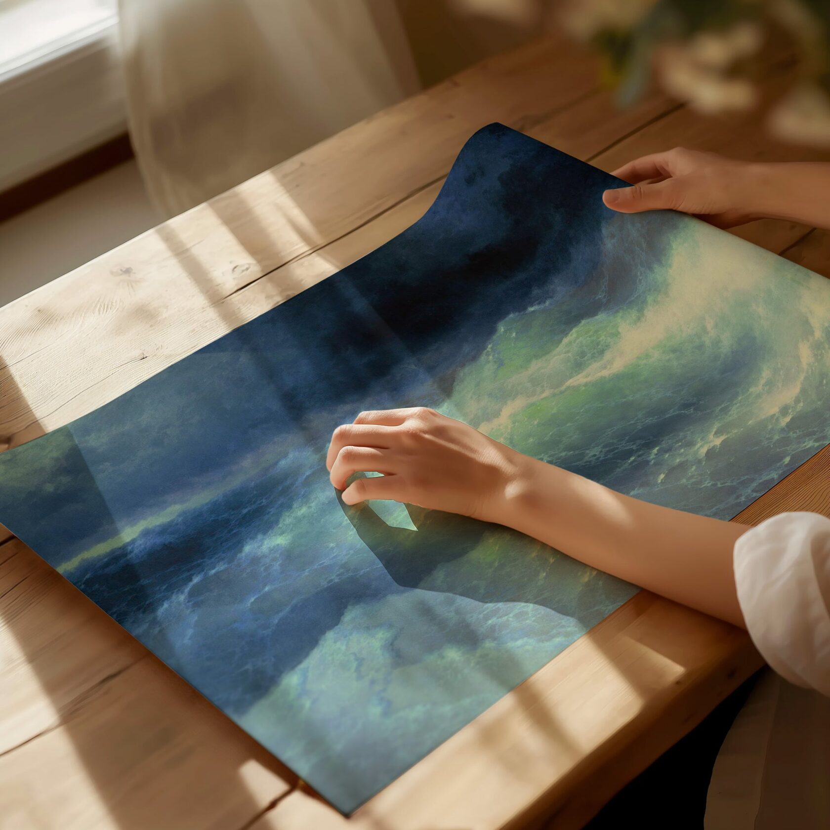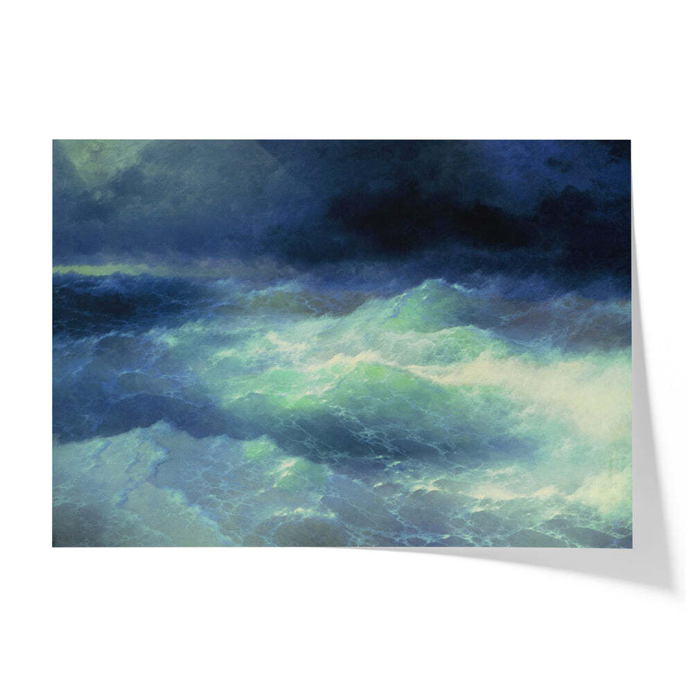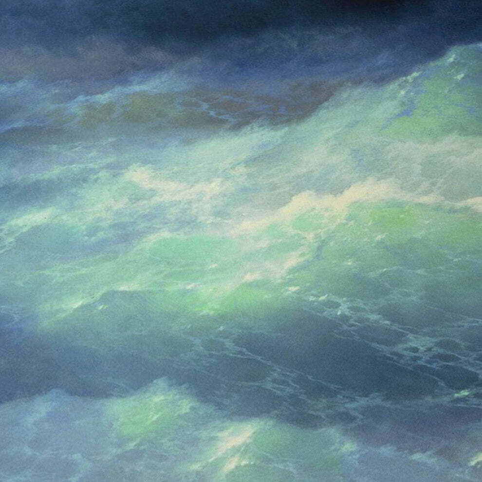 Иван Айвазовский, великий мастер романтических морских пейзажей, прославился своими поразительными изображениями моря — динамичного и исполненного эмоций. Родившийся в 1817 году в Феодосии, Крым, художник посвятил творчество исследованию взаимодействия света и воды, передавая величие и мимолётность морских видов.