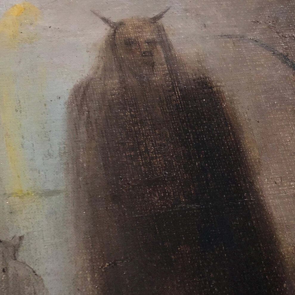 Эта работа наполнена мистической, почти потусторонней атмосферой и отражает увлечение художника тайнами человеческой психики и невидимыми силами, которые формируют наше восприятие и поведение.