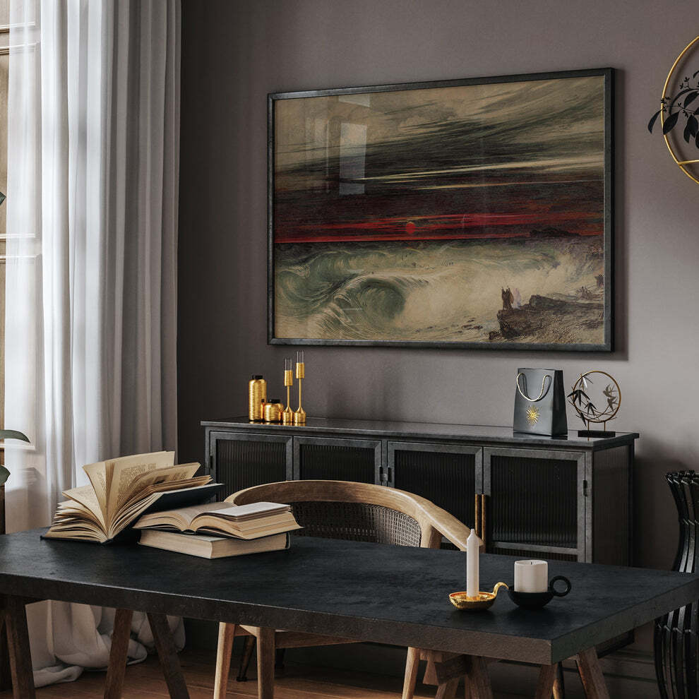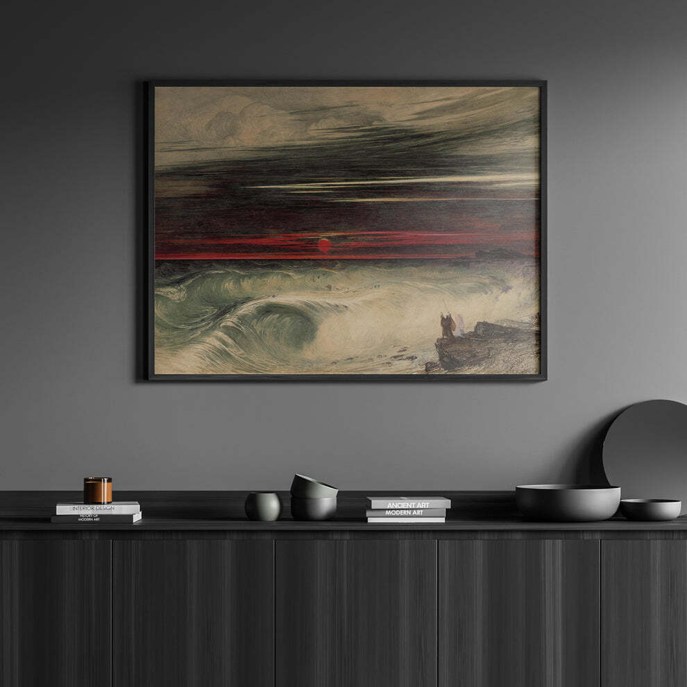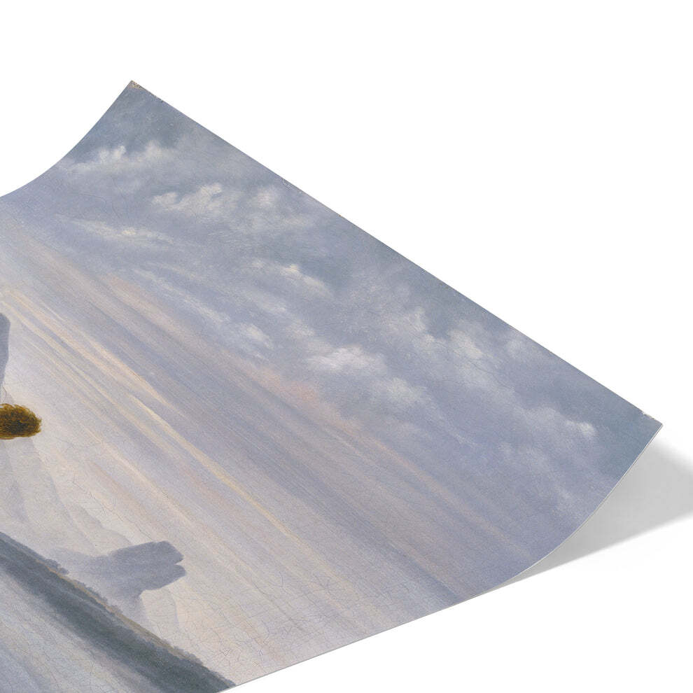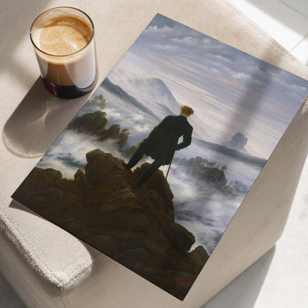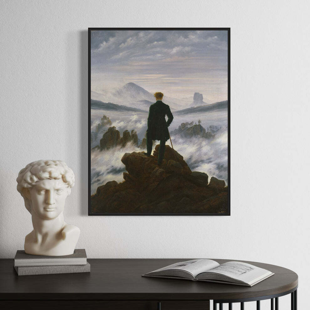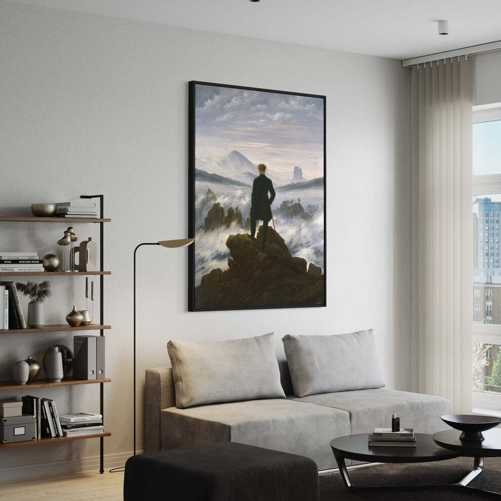 О картине: «Странник над морем тумана» (1818) Каспара Давида Фридриха — один из самых знаковых шедевров романтизма. На полотне изображён одинокий силуэт, стоящий на скалистом утёсе и взирающий на бескрайнее море тумана, скрывающее вершины и долины. Фигура в тёмном плаще, отвернувшаяся от зрителя, олицетворяет романтический идеал — человека, который ищет ответы в величии и тайне природы. Картина наполняет чувством возвышенного: трепетом перед бесконечностью, восторгом и размышлениями о месте человека во Вселенной. Это не просто пейзаж — это визуальная медитация о красоте природы, величии мира и вечном стремлении человека к неизвестному. Полотно Фридриха привносит в интерьер атмосферу силы, глубины и философского спокойствия.