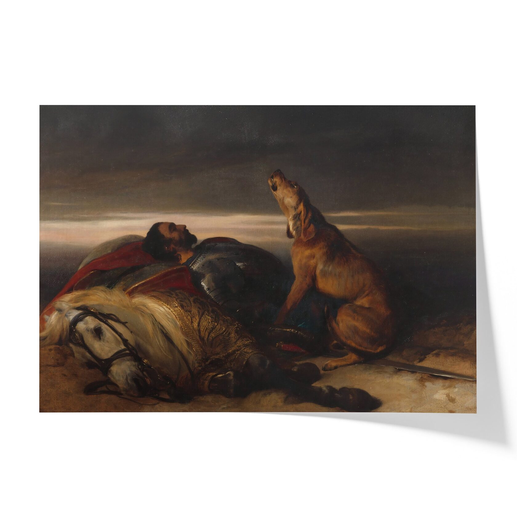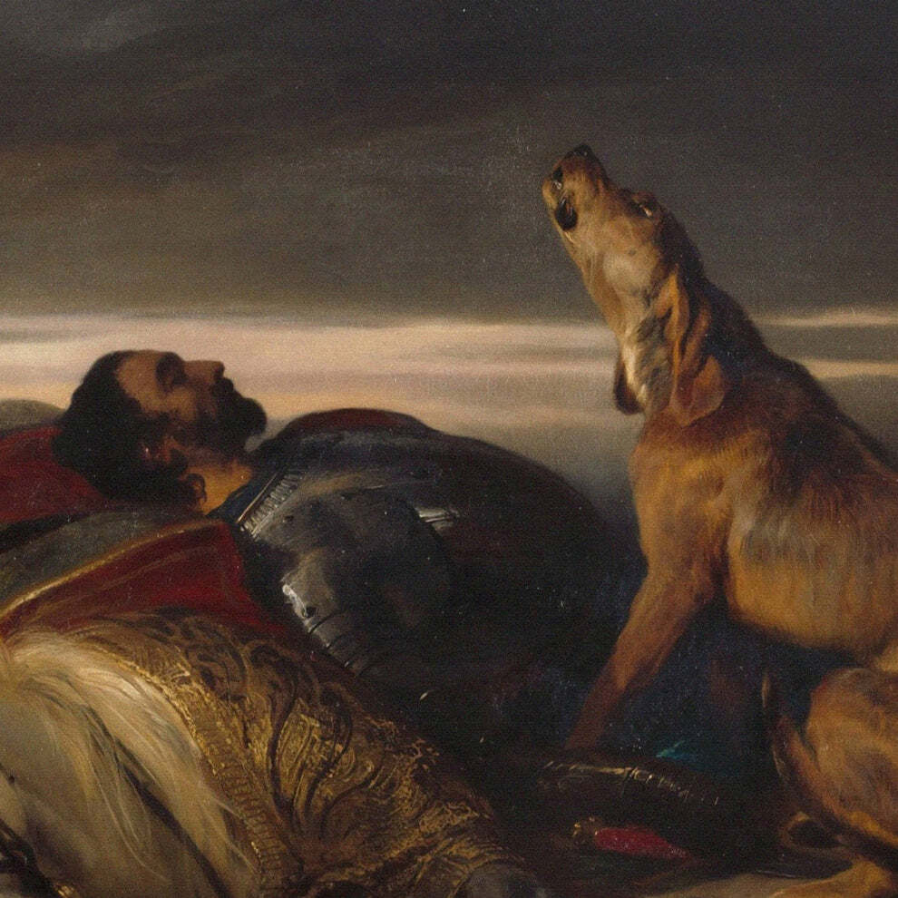 Вдохновившись легендой о собаке, охранявшей тело своего хозяина на горе Хелвеллин, Лэндсир переносит внимание с насилия битвы на её тихие последствия, где именно собака становится эмоциональным центром сцены. Викторианская публика сразу распознала бы нравственный символизм: собака — как чистота и верность, рыцарь — как честь. Так картина превращается в отражение ценностей, которые они особенно почитали.