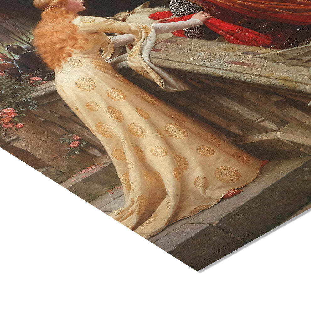 Скрупулёзное внимание Лейтона к деталям — вышитый пояс, готическая архитектура, уверенный взгляд рыцаря — наполняет сцену повествовательной глубиной. Баланс между нежностью и воинским долгом подчёркивает эмоциональную тяжесть расставания, превращая картину в образцовый пример мастерства Лейтона, умевшего соединять исторический сюжет с вечными чувствами.