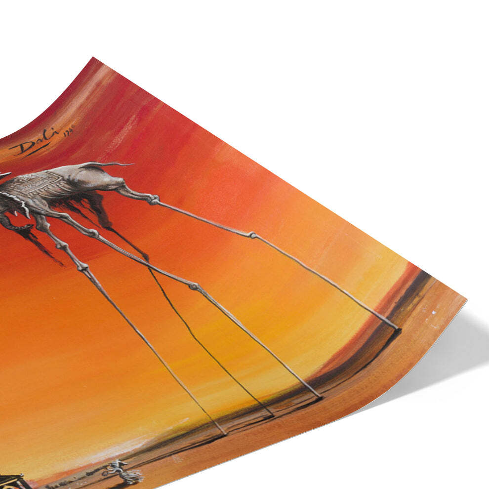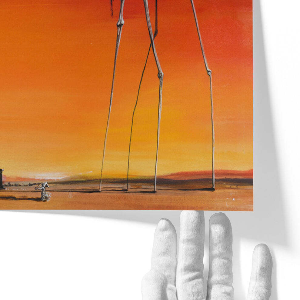 Под спокойным небом они шагают по безжизненному ландшафту, воплощая силу и величие, а обелиски отсылают к древней истории и мифам. Тщательная работа Дали с деталями и четкими линиями придаёт композиции глубину и гиперреалистичность, несмотря на её невозможную природу.
