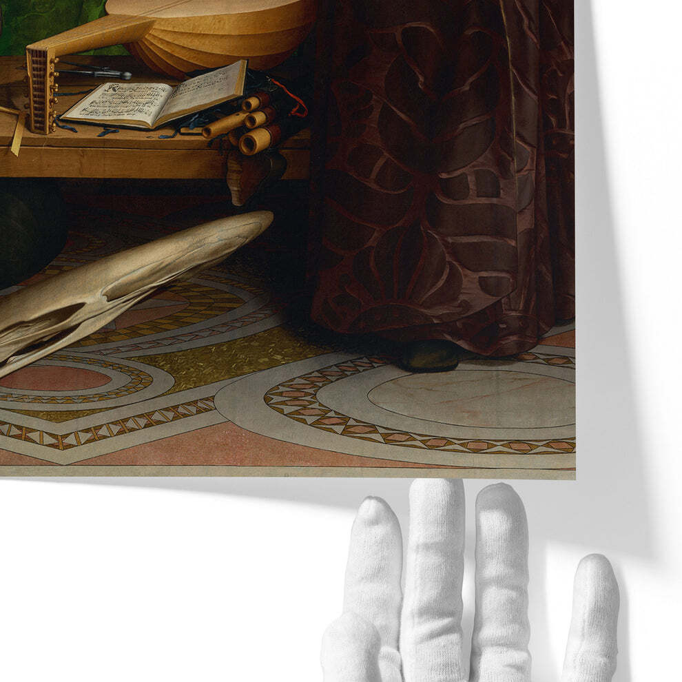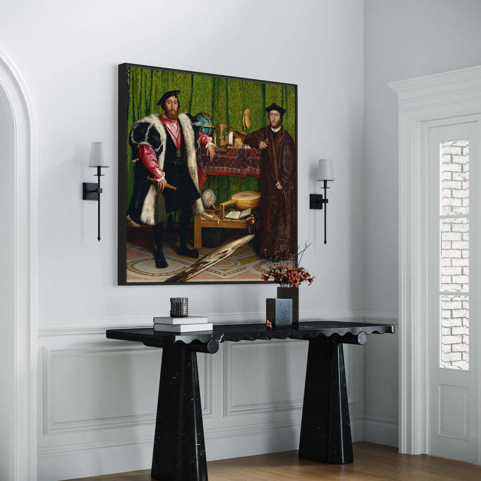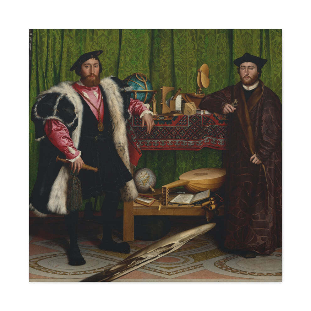 Картина «Послы» (1533) Ганса Гольбейна Младшего — одна из самых загадочных и эффектных работ эпохи Возрождения. На портрете изображены французские дипломаты Жан де Дентевиль и Жорж де Сельв, окружённые символами науки, музыки и знаний. Все детали — глобусы, книги, инструменты — олицетворяют жажду открытий и силу человеческого разума.