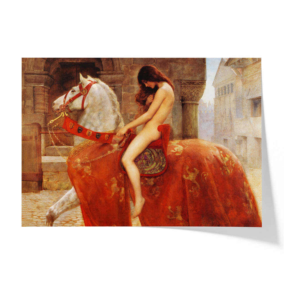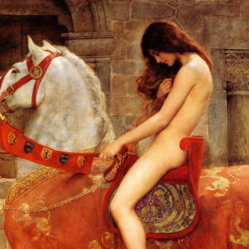 Картина Джона Кольера «Леди Годива» (1897) изображает легендарную знатную женщину с поразительным достоинством и сдержанностью, превращая сцену, которая могла бы быть сенсационной, в размышление о жертве и моральной отваге.