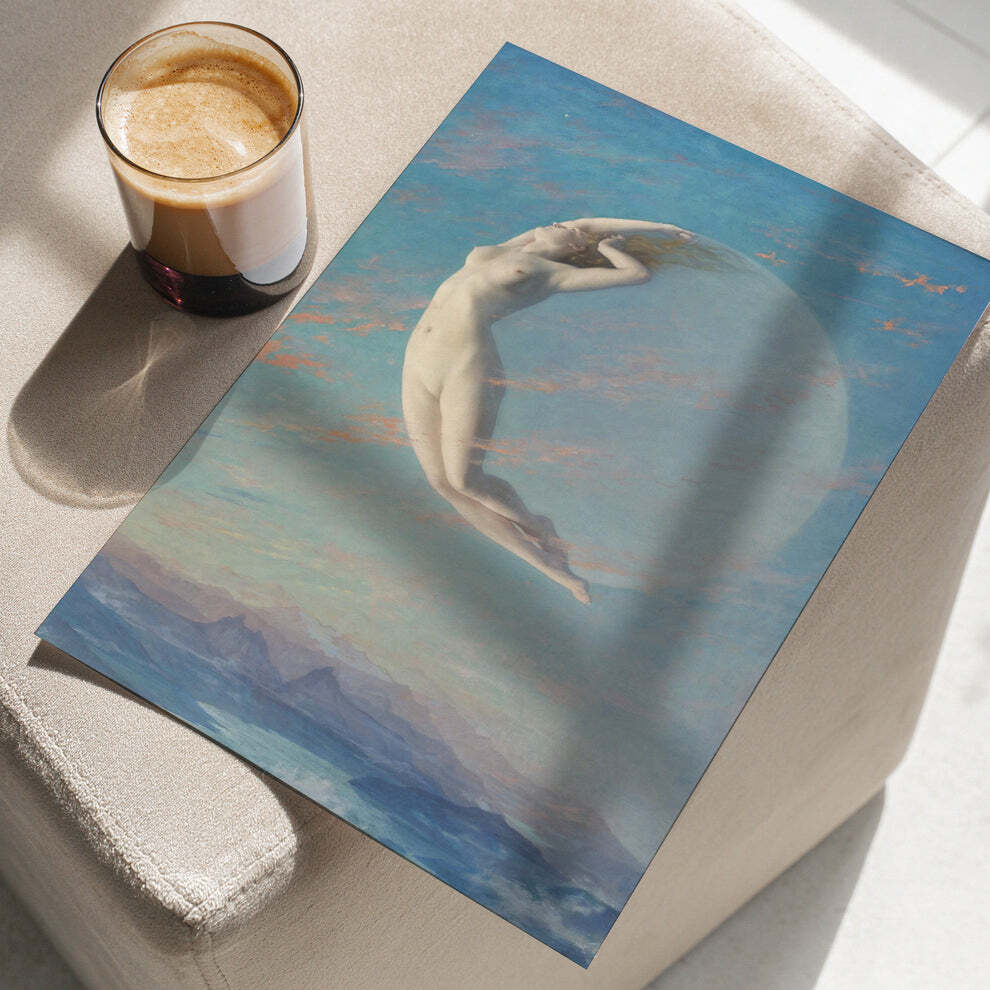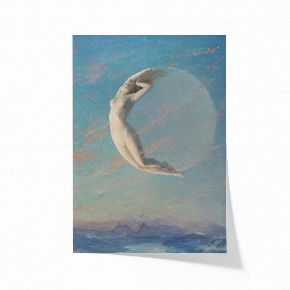 О работе: Картина Альбера Обле «Селена», созданная в XIX веке, — завораживающее изображение греческой богини Луны. В этом воздушном и мистическом полотне Селена предстает как сияющая, почти потусторонняя фигура, окутанная легкими струящимися одеждами, словно колышущимися от невидимого ветра.