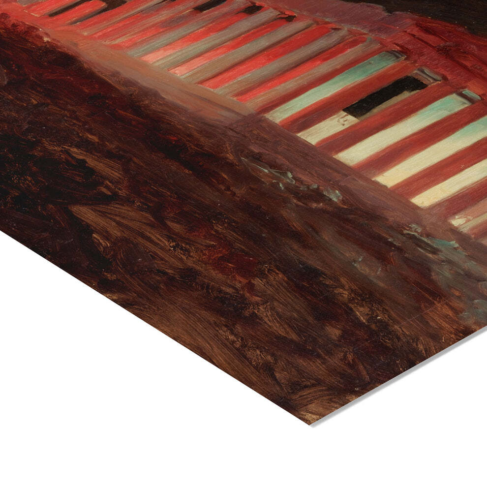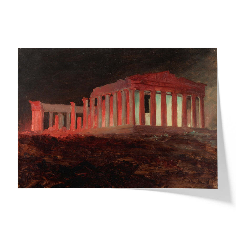 О картине: В этом атмосферном этюде маслом Фредерик Эдвин Чёрч превращает руины Парфенона в сияющий символ культурного почитания и вечного величия. Храм, залитый искусственным светом на фоне тёмного ночного неба, предстает не как реликвия прошлого, а как живой памятник, зависший между памятью и воображением.