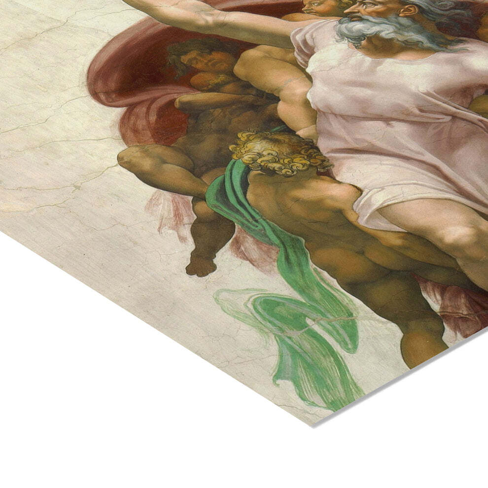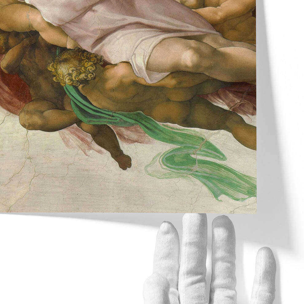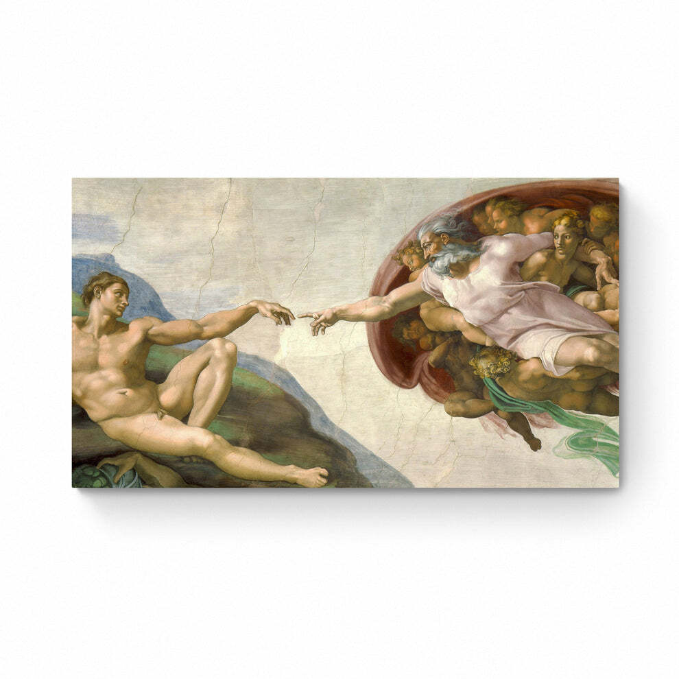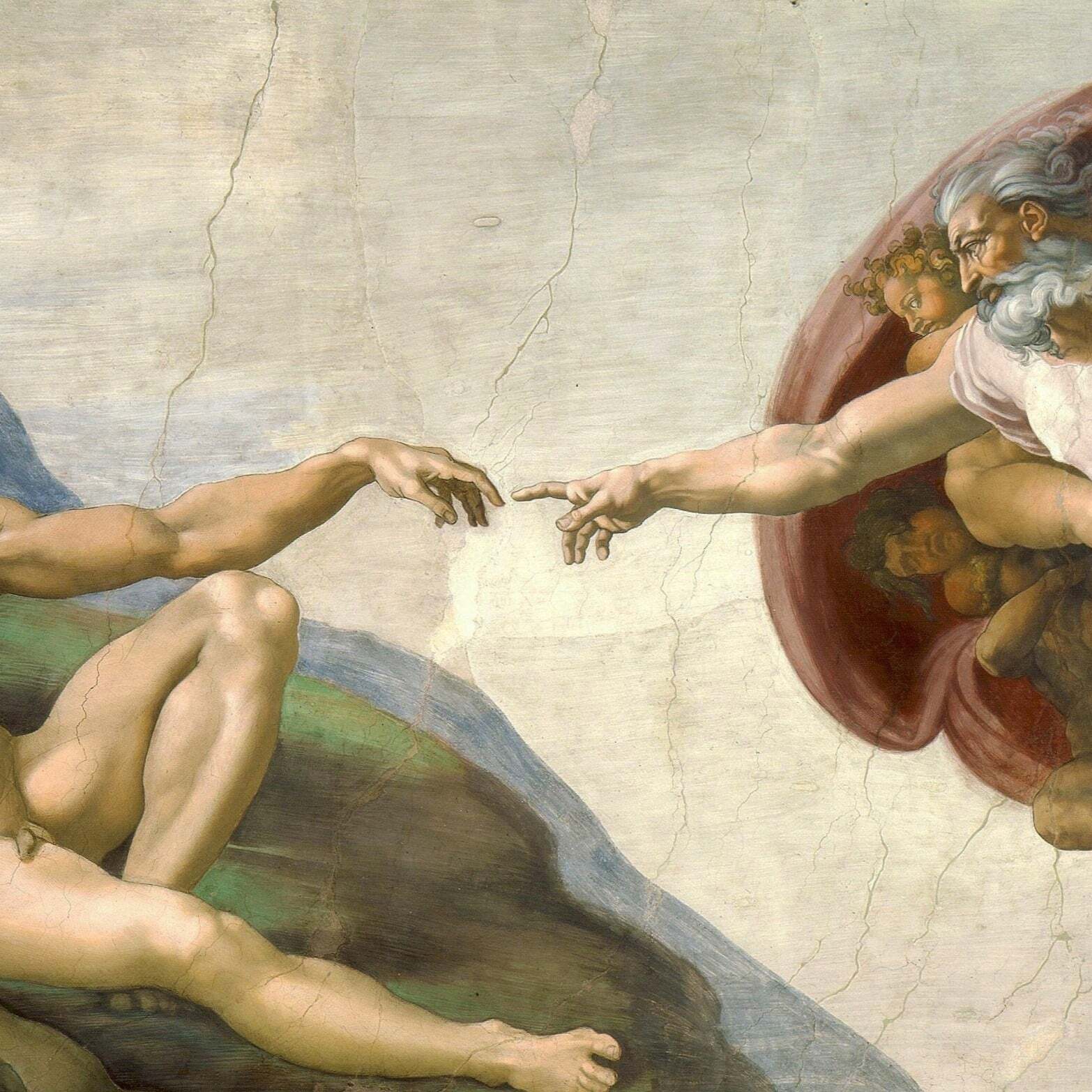 О работе: «Сотворение Адама» — величайший шедевр Микеланджело, написанный на своде Сикстинской капеллы между 1508 и 1512 годами. В этой знаменитой фреске художник изображает библейский момент из книги Бытия, когда Бог дарует жизнь первому человеку — Адаму.