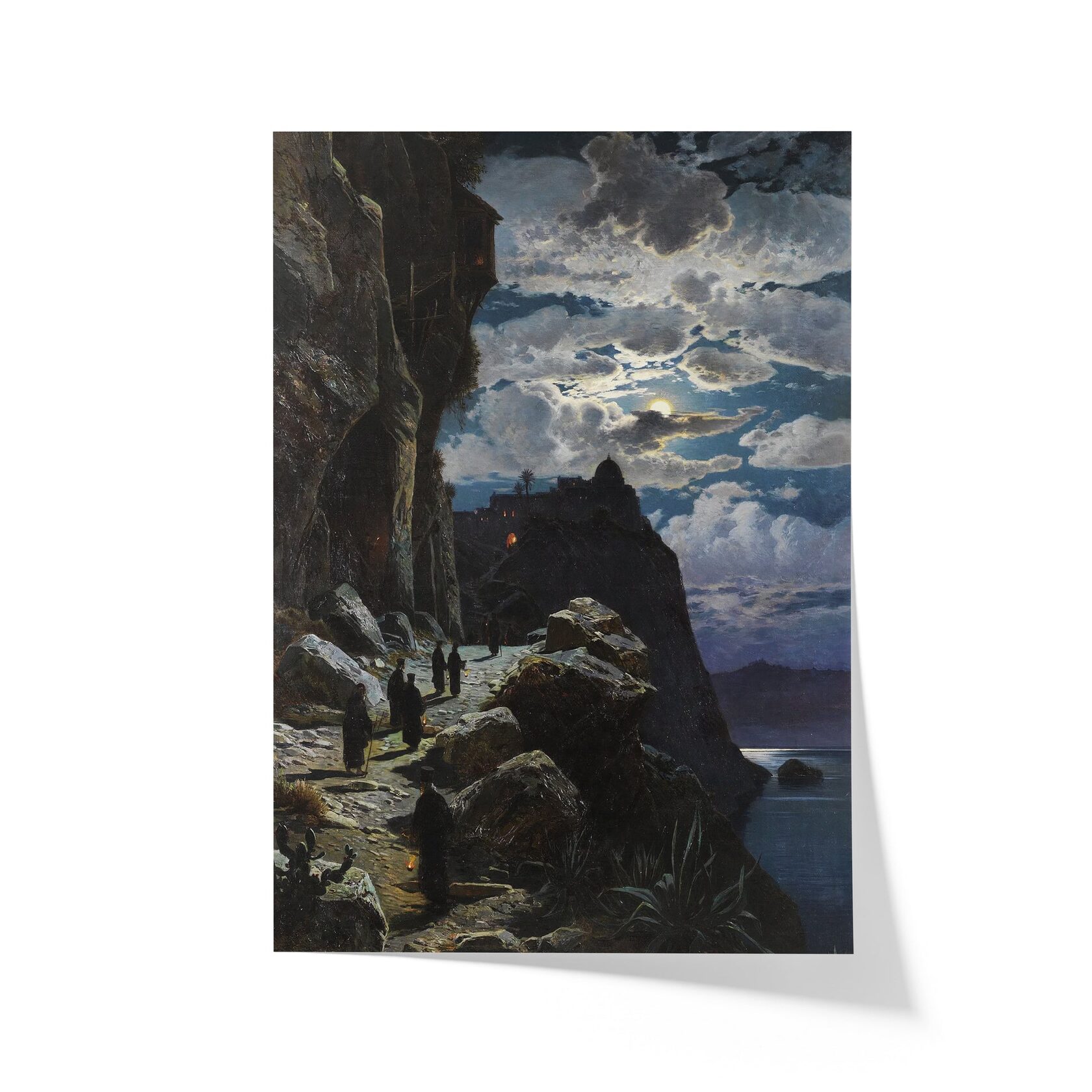 О работе: Картина Германа Корроди наполнена тишиной и сосредоточенностью — монахи идут по каменистым тропам к священному монастырю Афона. Художник тонко передал силу их веры и спокойную решимость, наполнив сцену атмосферой вечного паломничества. Свет и тени создают почти медитативное ощущение, приглашая зрителя к размышлениям о духовности и пути, который каждый проходит сам.