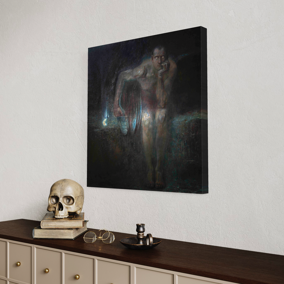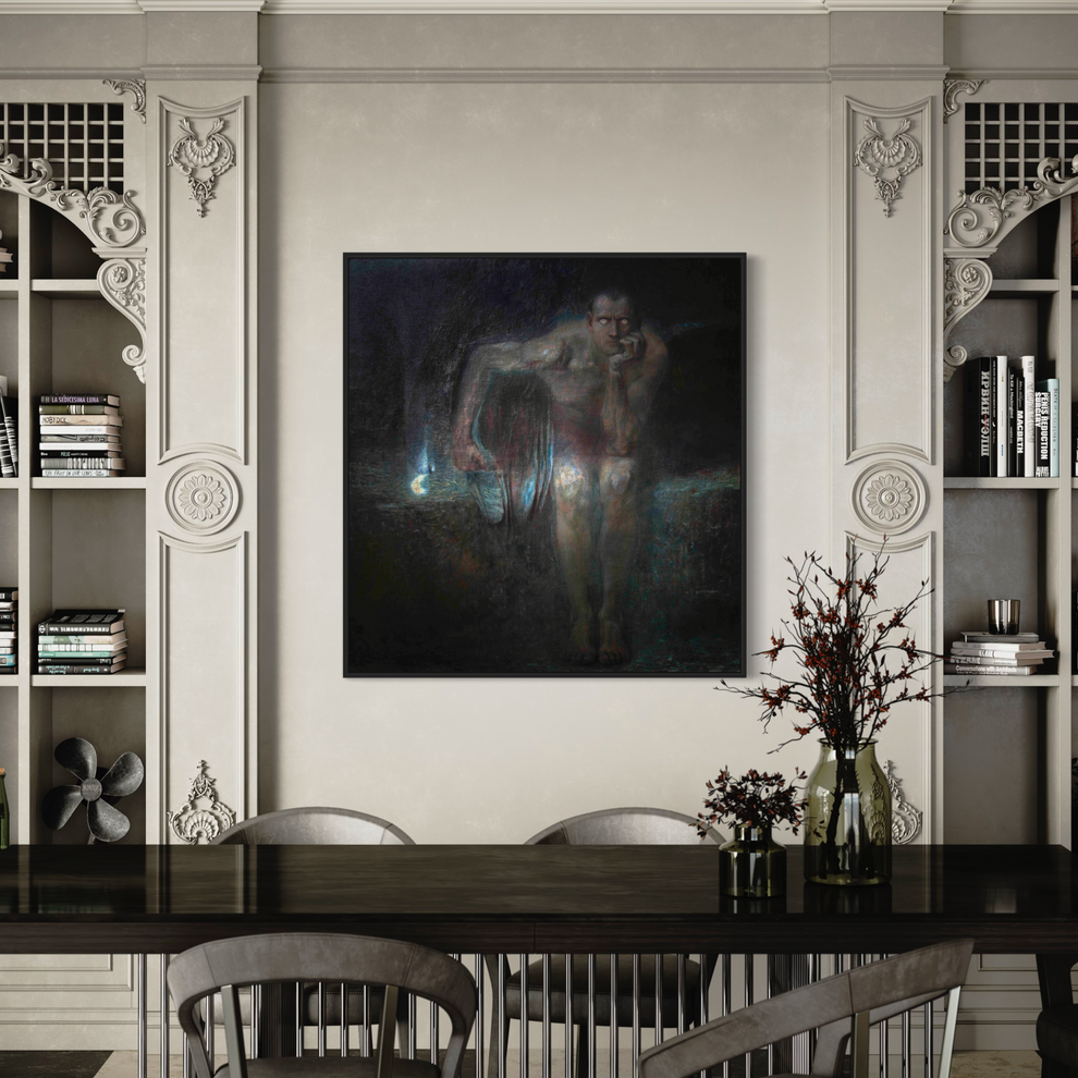Это произведение искусства идеально подойдёт для тех, кто ценит эстетику символизма, мистику и редкую атмосферу старинных полотен. На вашей стене оно станет не просто украшением, а настоящим порталом в мир тайн и воображения.