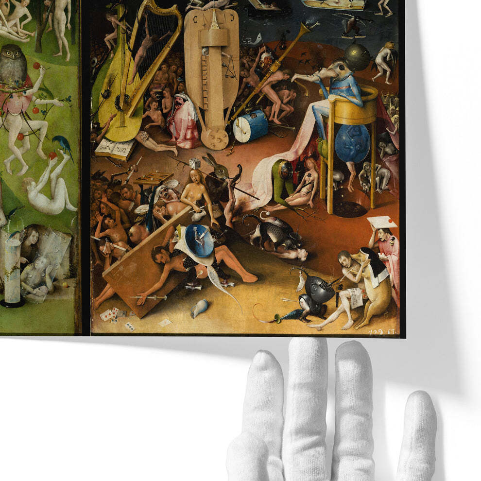 Правая панель раскрывает ужасающую картину ада, населённого демонами и мучающимися душами. Мастерство Босха в деталях и символике поражает: картина становится не просто изображением, а метафорой вечной борьбы между искушением и спасением. Этот триптих до сих пор заставляет зрителей задумываться о природе морали и человеческой души, оставаясь культовым произведением мирового искусства.