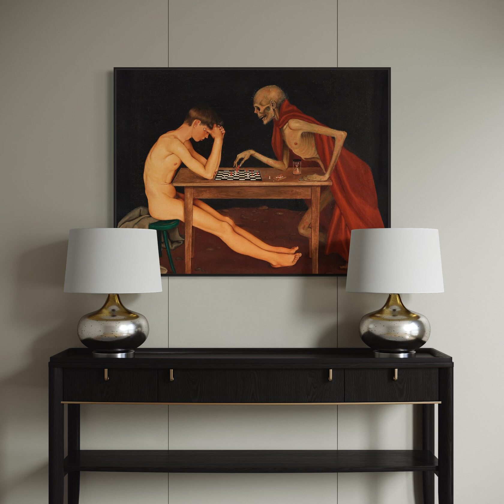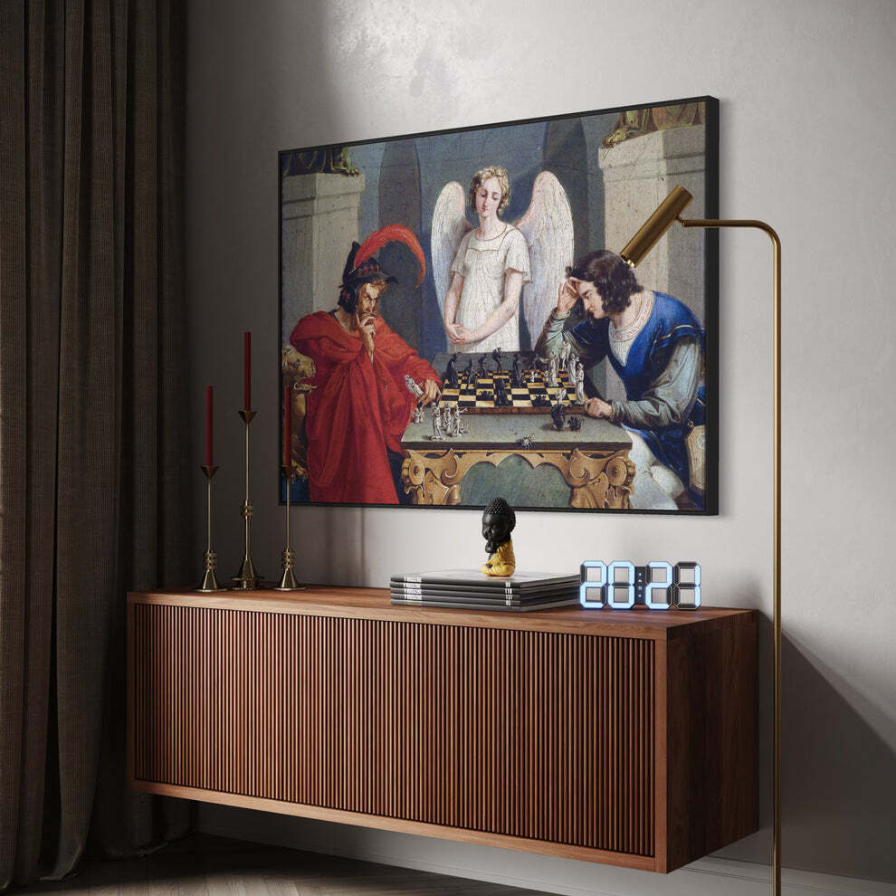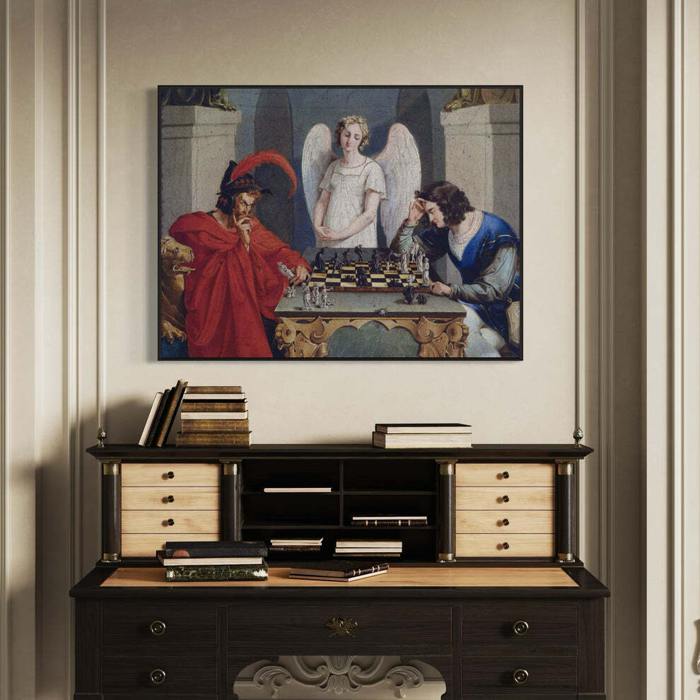 Ретч, мастер романтизма, наполняет композицию символизмом: шахматная доска превращается в поле битвы добра и зла, искушения и надежды. Это произведение не просто о шахматах — оно о внутренней борьбе каждого человека, о том, что даже в самые тёмные моменты всегда остаётся шанс на выбор и спасение.