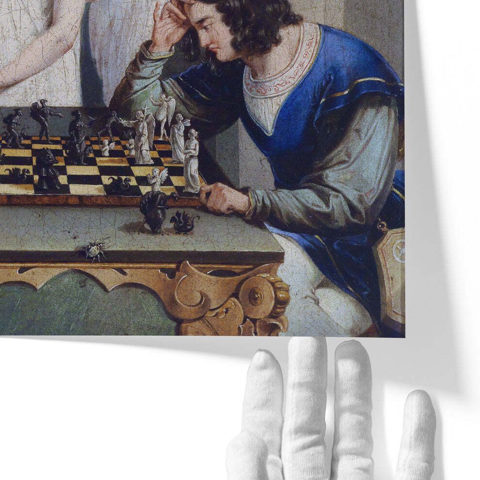 Дьявол, уверенный и самодовольный, кажется уже победителем: судьба человека висит на волоске. Однако внимательный взгляд раскрывает деталь — партия ещё не окончена. У фигуры короля остаётся единственный ход, намёк на последнюю возможность спасения.