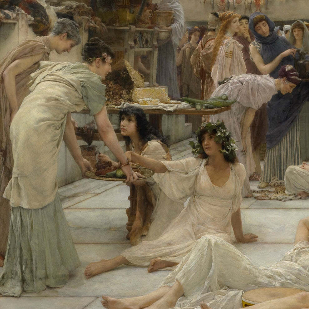 О работе: «Женщины Амфиссы» (1887), сэр Лоуренс Альма-Тадема — пример увлечения художника повседневной жизнью в древности, переданной с его фирменной тщательностью и сияющей палитрой.